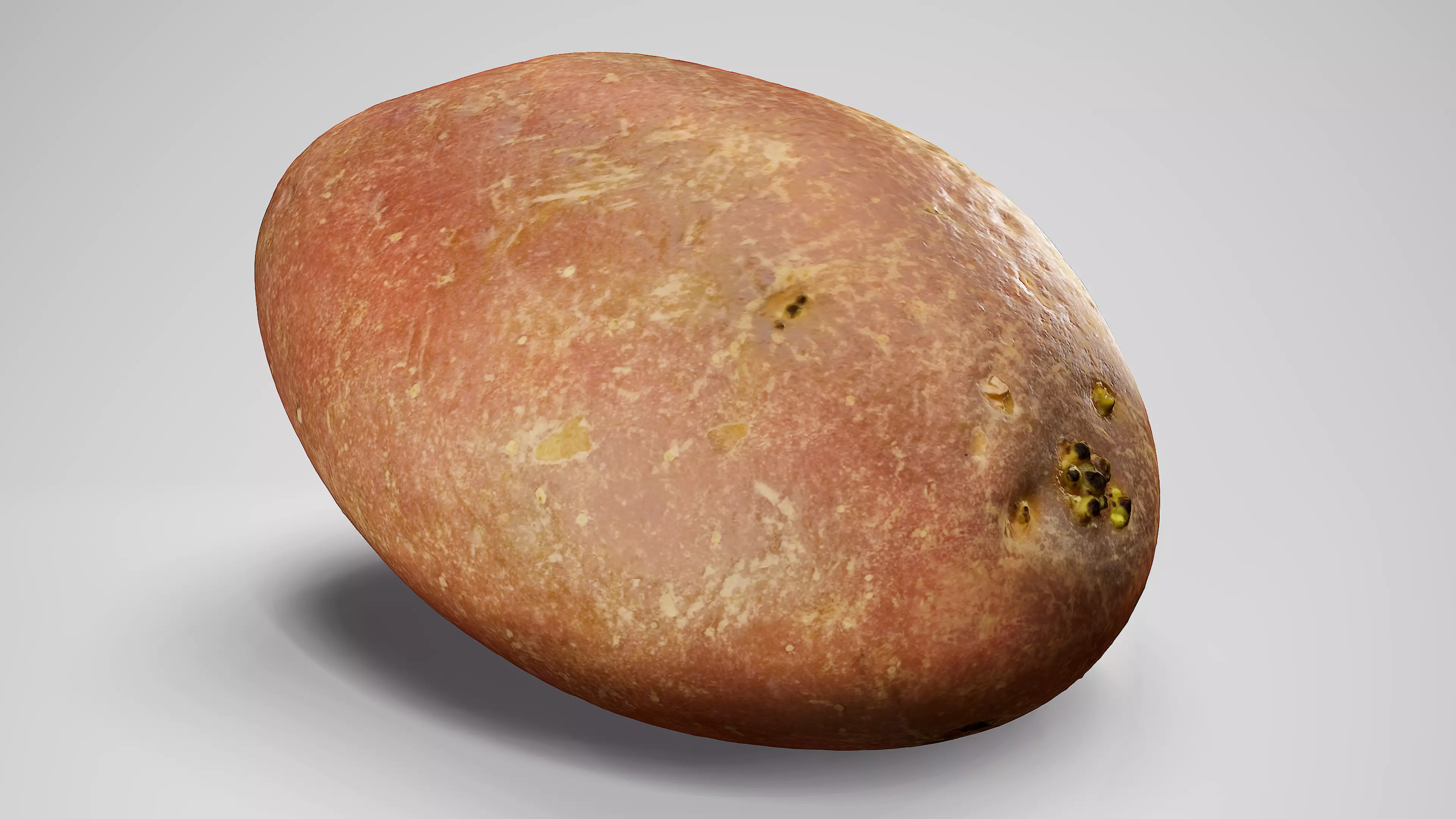 This Désirée Potato is a high-quality, photorealistic 3D model, created using photogrammetry, and then optimized for production using a variety of software. The rendered images in the preview were done in Marmoset Toolbag 4, and a very basic light setup.