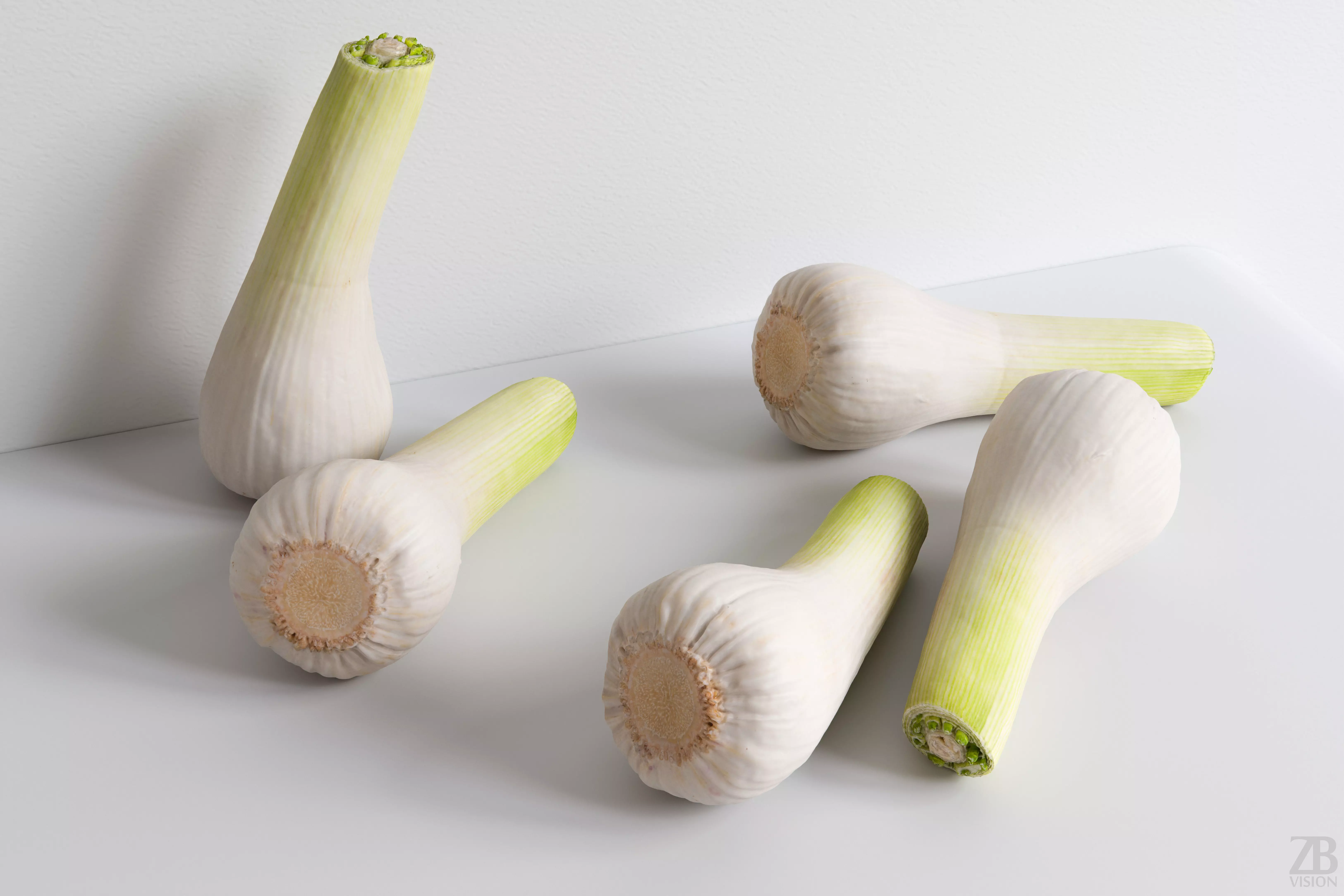 The garlic model is presented as single mesh in 3 subdivision levels: low, mid and high. Meshes are quad based. The polycounts are: 5K, 85K and 1368K . High detail model included in .max, .fbx and .obj formats.