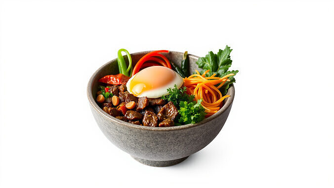 Each model has 3 levels of detail: low-poly, middle-poly, and high-poly, which allows for use in production rendering (such as 3ds Max, Maya, Cinema4D, Blender, Vray/Corona/Cycles and all others), game engines (Unity and Unreal compatible), and interactive presentations, providing a choice of detail based on the LOD System principle. The model accurately captures vibrant vegetables, marinated beef, and a sunny egg arranged in a modern stone bowl. Ideal for culinary visualizations, cultural scenes, or restaurant simulations. The model's textures are PBR, Diffuse, NormalMap, and reflection/roughness/metallic, suitable for any modern rendering engine. All models are accurately unwrapped with no overlapping UVs. All textures are 4096x4096 in size.