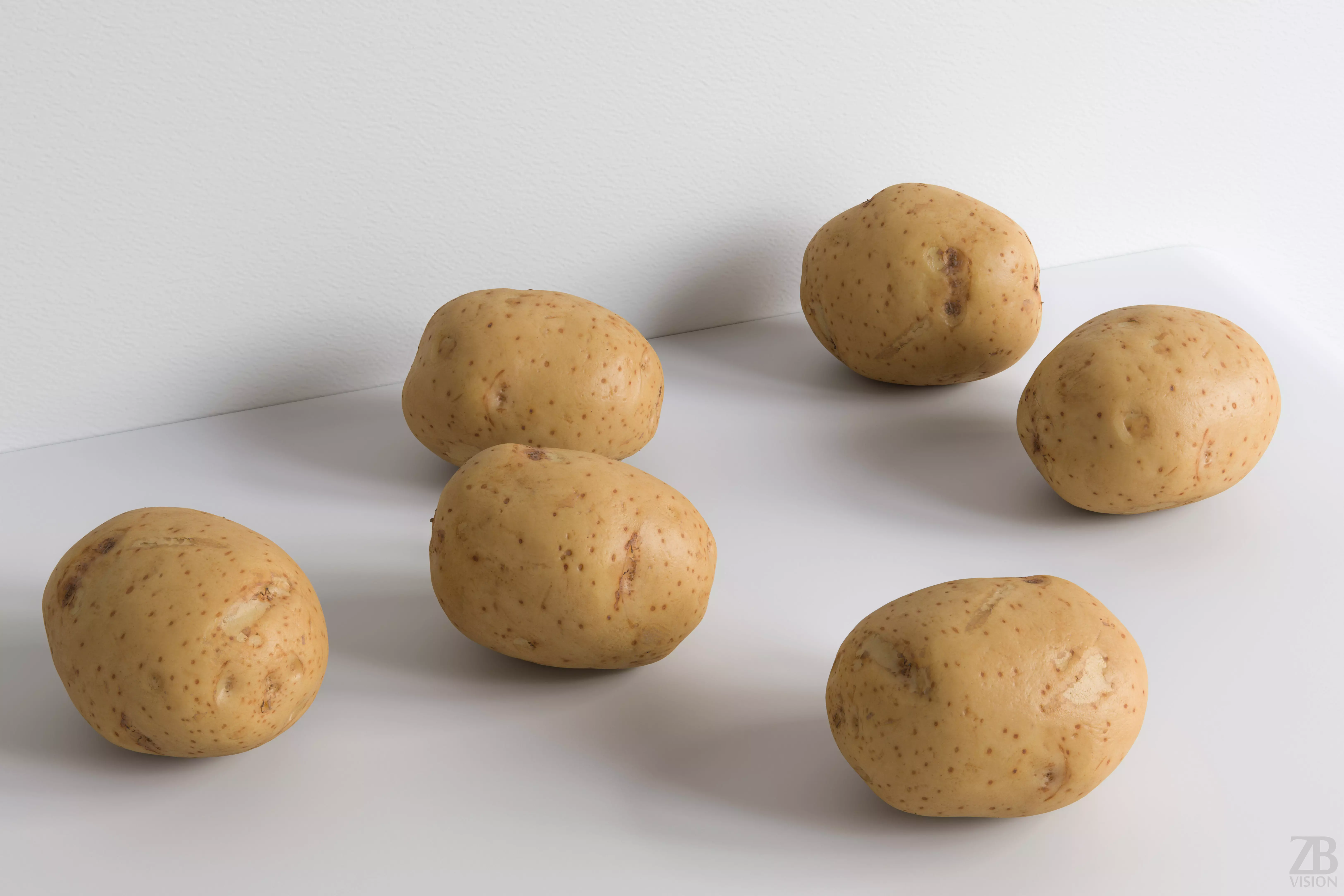 This is a 3d model of a potato. It was scanned and prepared for photorealistic renderings, close-ups, stills, and animation. The potato model is ready to be inserted into your scene out of the box.