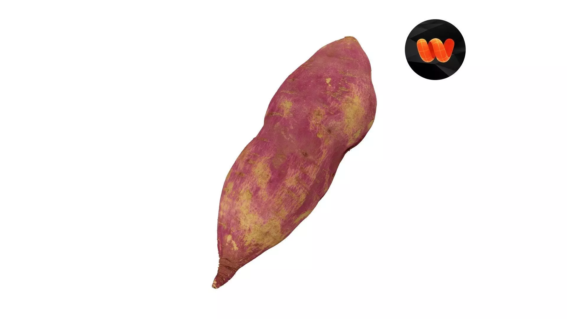 This sweet potato (Ipomoea batatas) has purple (red) skin and butter-colored flesh. The sweet potato is a dicotyledonous plant that belongs to the family Convolvulaceae. Its large, starchy, sweet-tasting, tuberous roots are a root vegetable. The origin and domestication of sweet potato are thought to be in either Central America or South America. The sweet potato was grown in Polynesia before western exploration. Sweet potato has been radiocarbon-dated in the Cook Islands to 1000 AD, and current thinking is that it was brought to central Polynesia around 700 AD, possibly by Polynesians who had traveled to South America and back, and spread across Polynesia to Hawaii and New Zealand from there. Sweet potatoes are cultivated throughout tropical and warm temperate regions wherever there is sufficient water to support their growth.