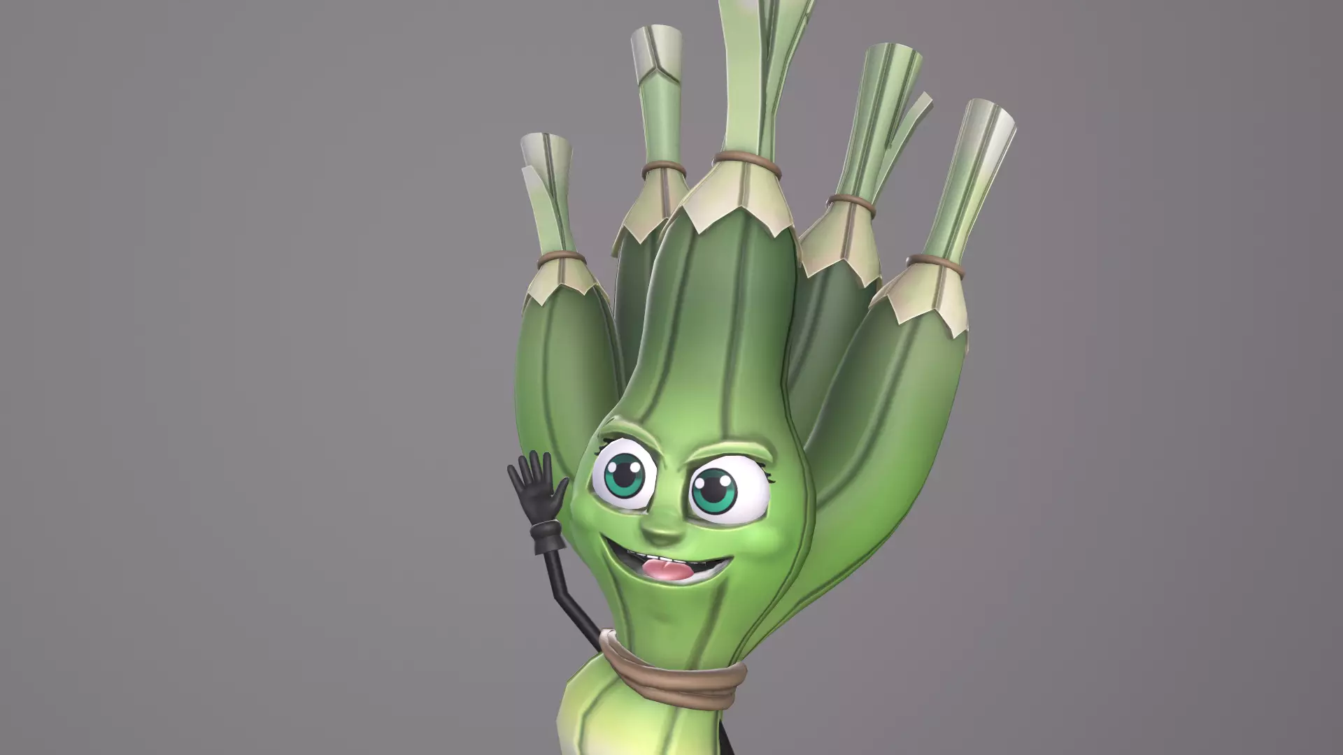 A 3D Character model of a Spring Onion. The Spring Onion has texture style 2k resolution. It includes 17 animations **It’s a stylized character model that can fit a low poly game** and has been used by our studio in a UEFN project.