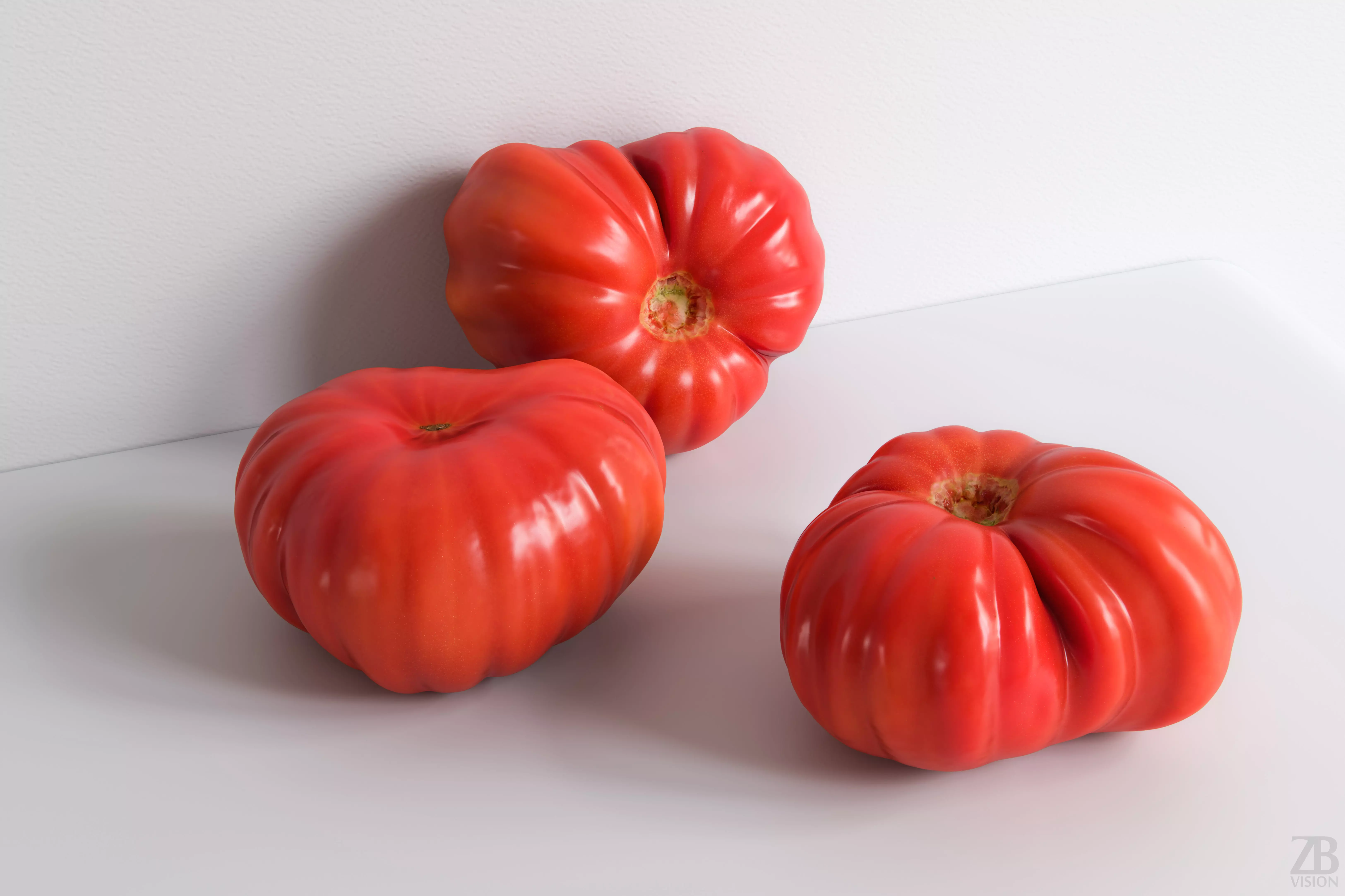 This is a 3d model of a tomato, monterosa variety. It was scanned and prepared for photorealistic renderings, close-ups, stills and animation. The tomato model is ready to be inserted in your scene out of the box.