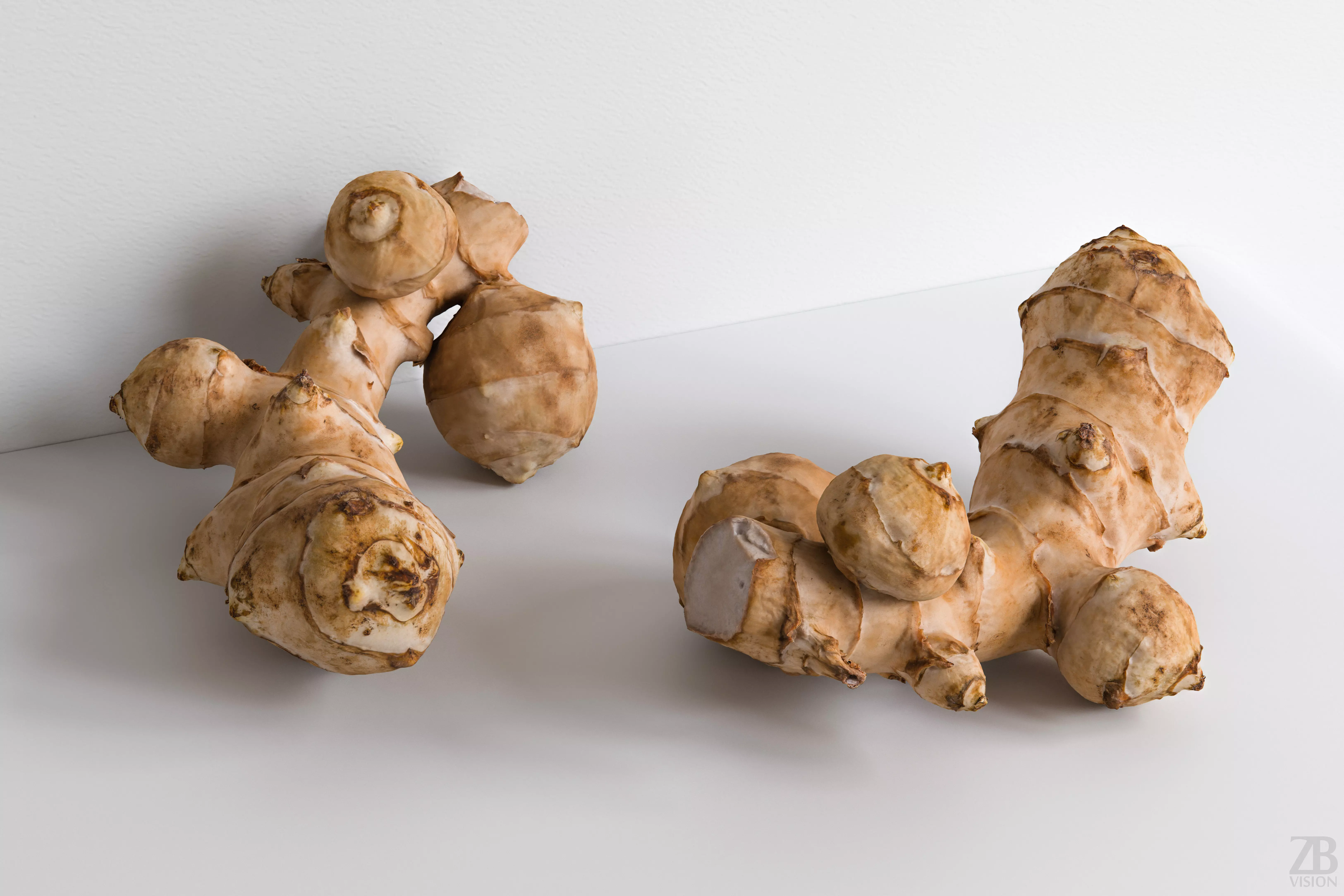 This is a 3D model of a topinambur aka jerusalem artichoke. It was scanned and prepared for photorealistic renderings, close-ups, stills, and animation. The topinambur model is ready to be inserted into your scene out of the box.