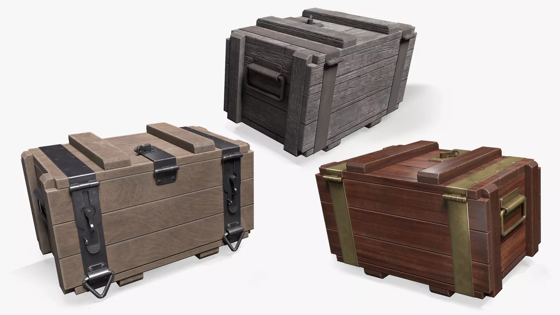 Game-ready low-poly PBR model of wooden ammunition boxes.Optimized for real-time use in Unreal Engine and Unity.Suitable for FPS, survival, military, tactical, WWII, western, and post-apocalyptic games.