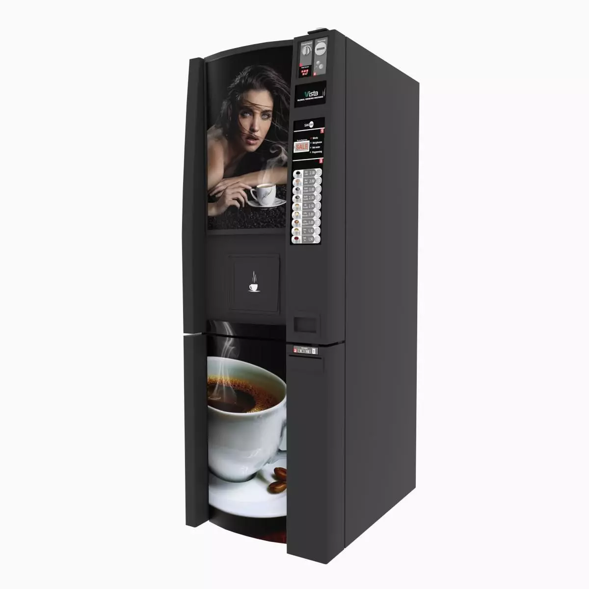 Generic design of Coffee Vending Machine. It's designed to add more details and realism to your projects. Detailed enough for close-up renders.