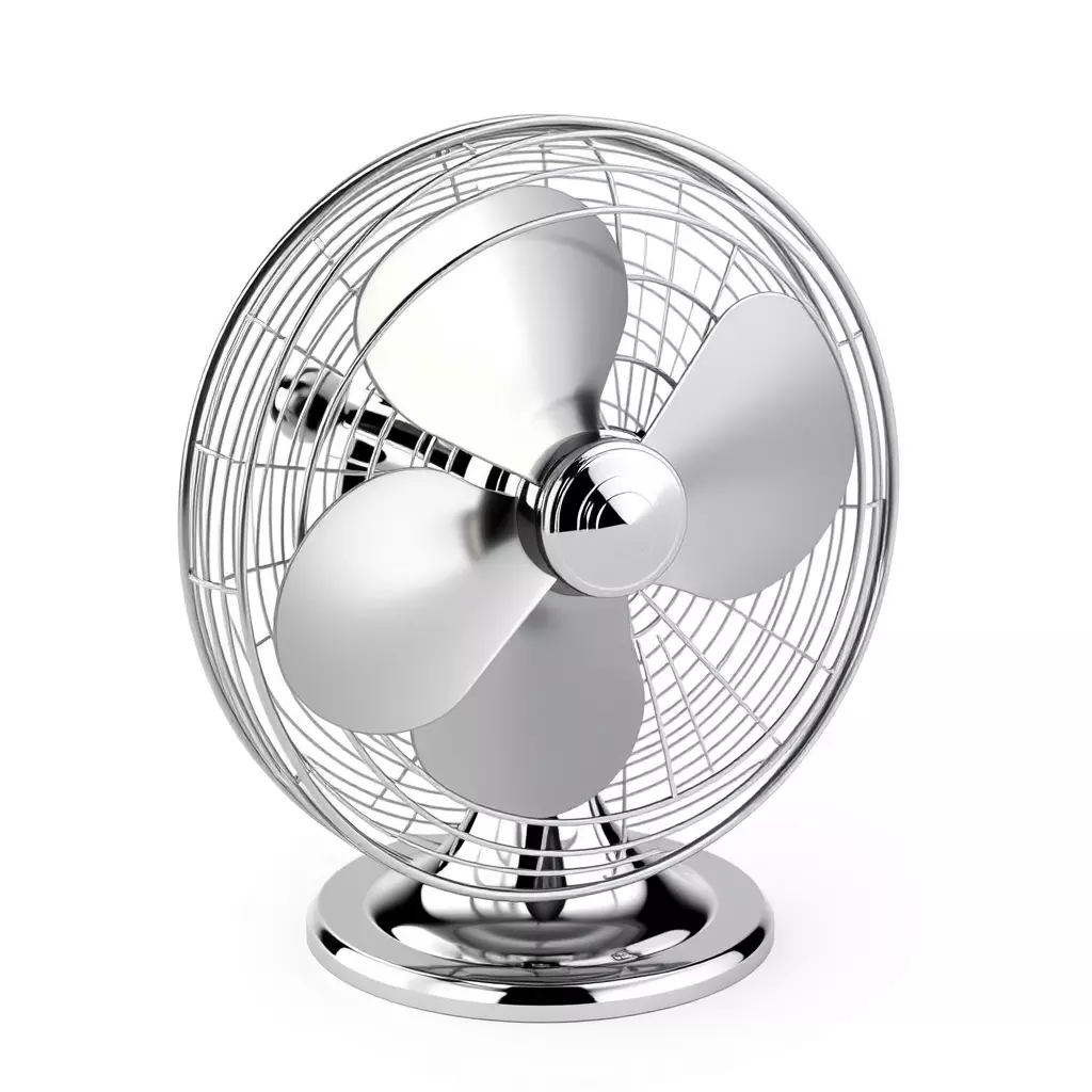 This meticulously crafted 3D model represents a stunning vintage-style desk fan, featuring a highly polished chrome finish and a classic retro design. The model is ideal for adding a touch of timeless elegance to various digital projects. It is perfectly suited for high-quality architectural visualization, allowing you to enrich interior scenes, office setups, or living room renderings with a realistic and detailed appliance. Digital artists can utilize this model for captivating product shots or intricate scene compositions, benefiting from its reflective surfaces and accurate proportions. While primarily optimized for static renderings, its clean topology allows for efficient integration into animated sequences or high-fidelity game environments that require detailed props. The model boasts a professional, clean topology, making it ready for subdivision for even smoother results if needed. It comes fully UV unwrapped for easy texture application and is prepared with high-quality PBR materials for lifelike reflections and accurate light interaction. This asset is compatible with a wide range of 3D software and can typically be provided in formats such as GLB, OBJ, FBX, USD, STL, ABC, DAE, and PLY, ensuring broad interoperability across your workflow.