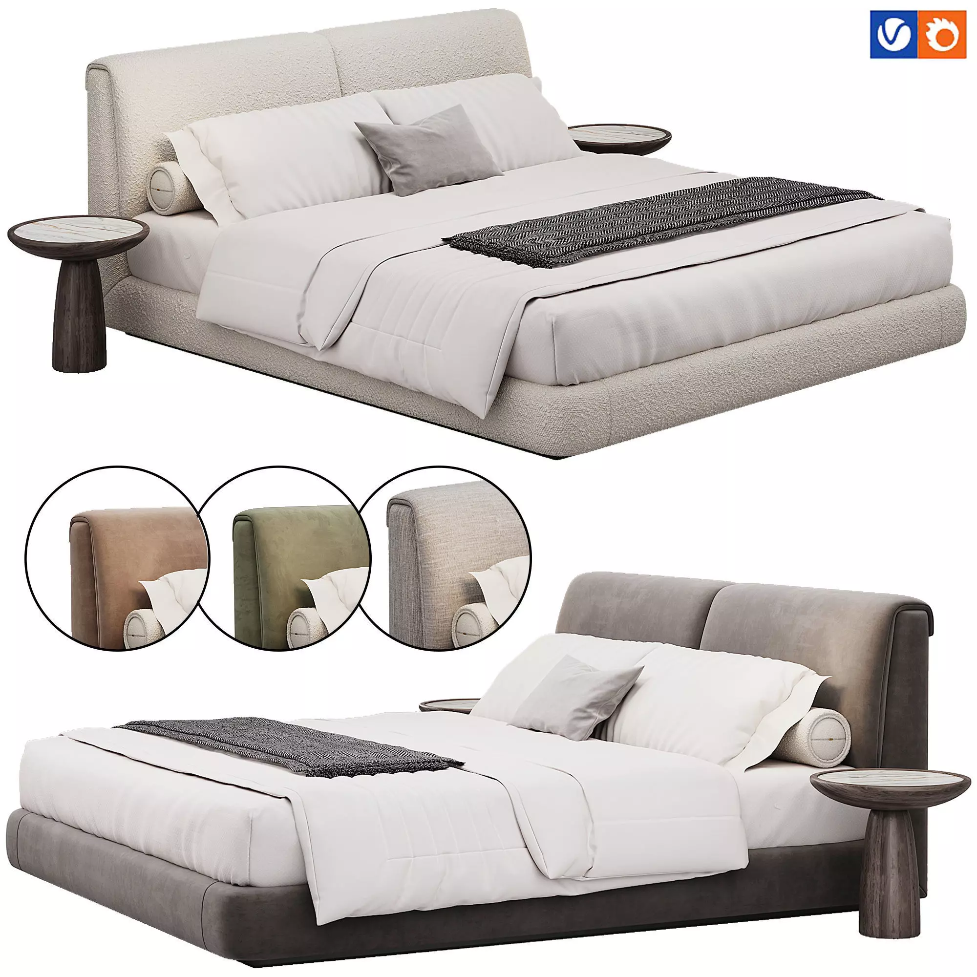 Name: Baltimora Bed By MisuraEmmeType: modelFormat: 3Ds Max 2020Render: CoronaPolys: 792628Verts: 808022Units: MillimetersDimension: 1900 x 2200 x 906