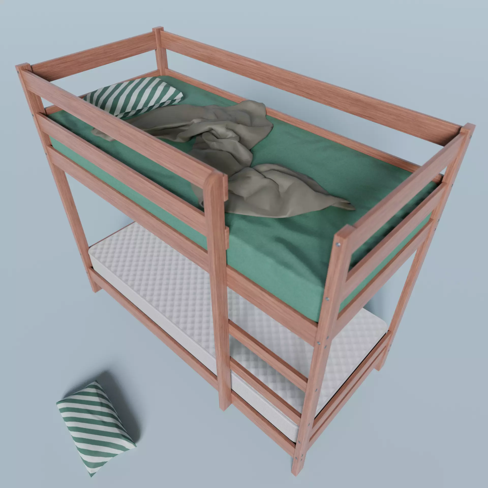 A fully textured, low-poly, bunkbed, accompanying mattress, pillow and prop blanket.
