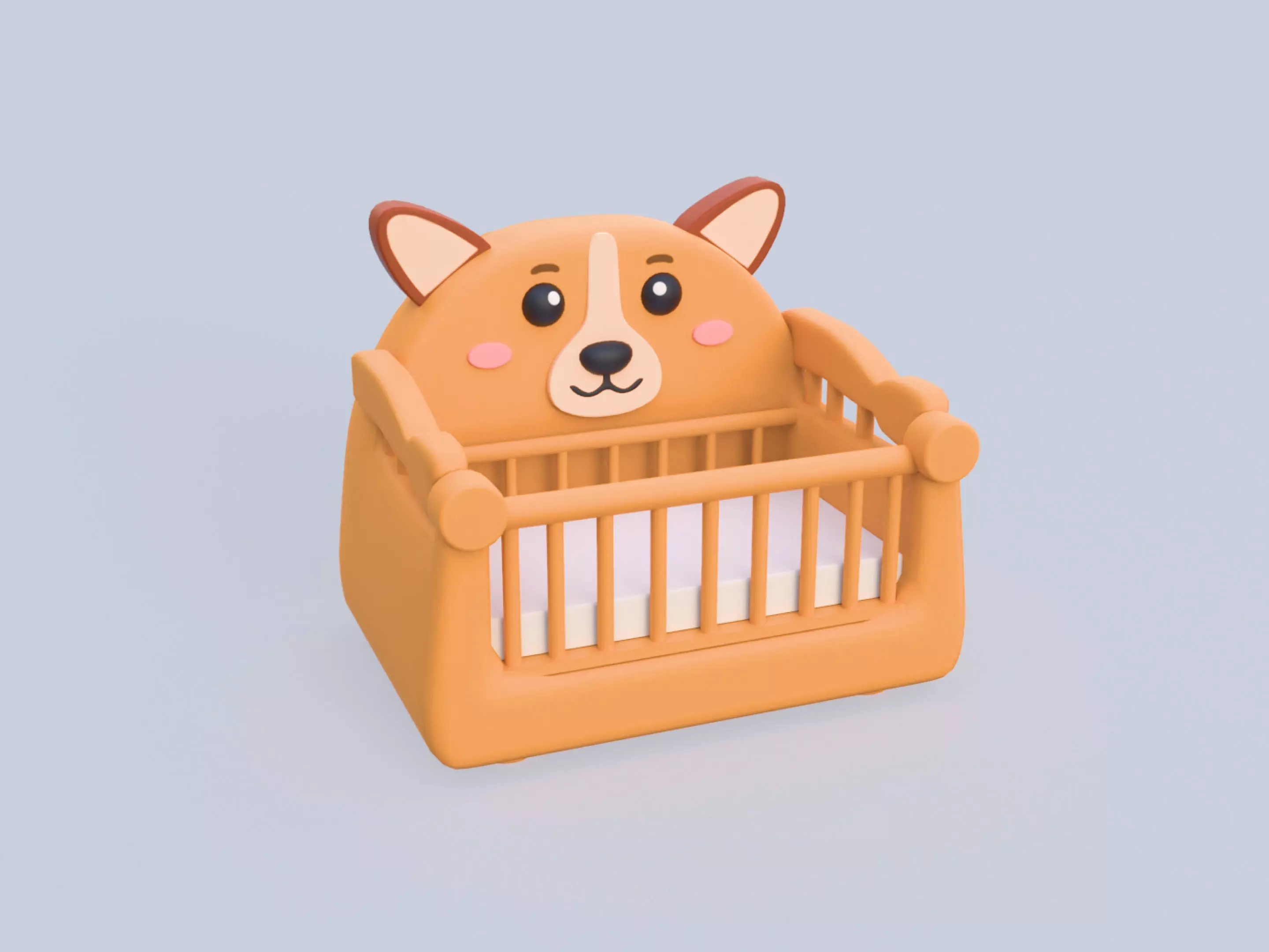 Cartoon Dog Baby Crib Nursery Low-poly 3D model