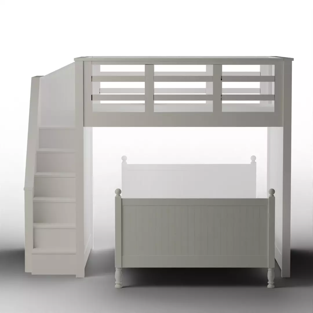 Catalina Twin Stair Loft Square Full Bed Set Simply White Low-poly 3D model