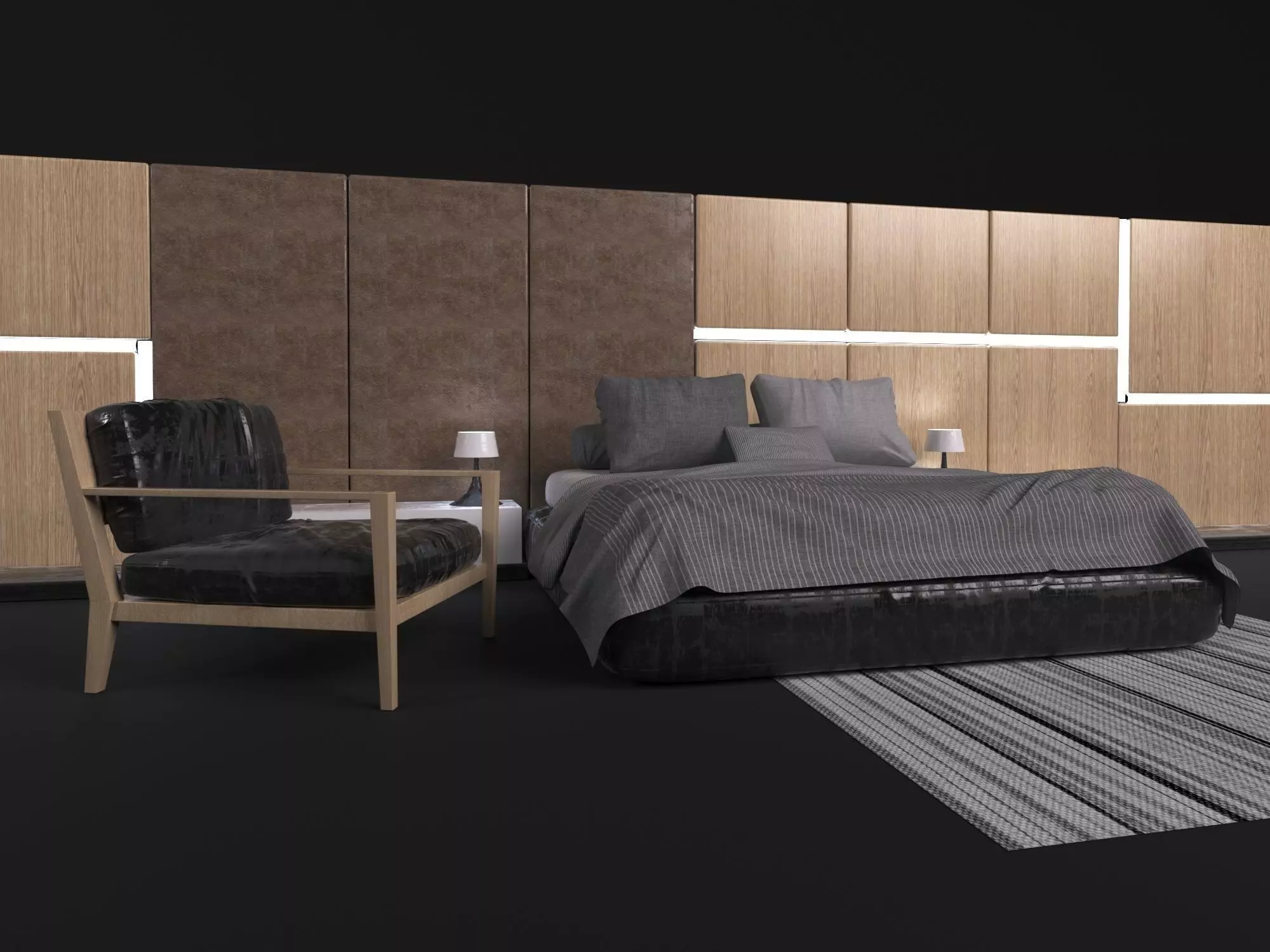 The model has material settings that define how surfaces look (color, shine, transparency, etc.).