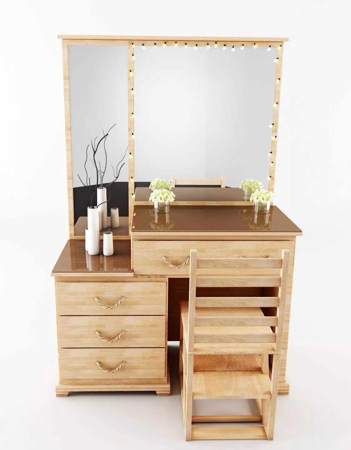 The model has material settings that define how surfaces look (color, shine, transparency, etc.).