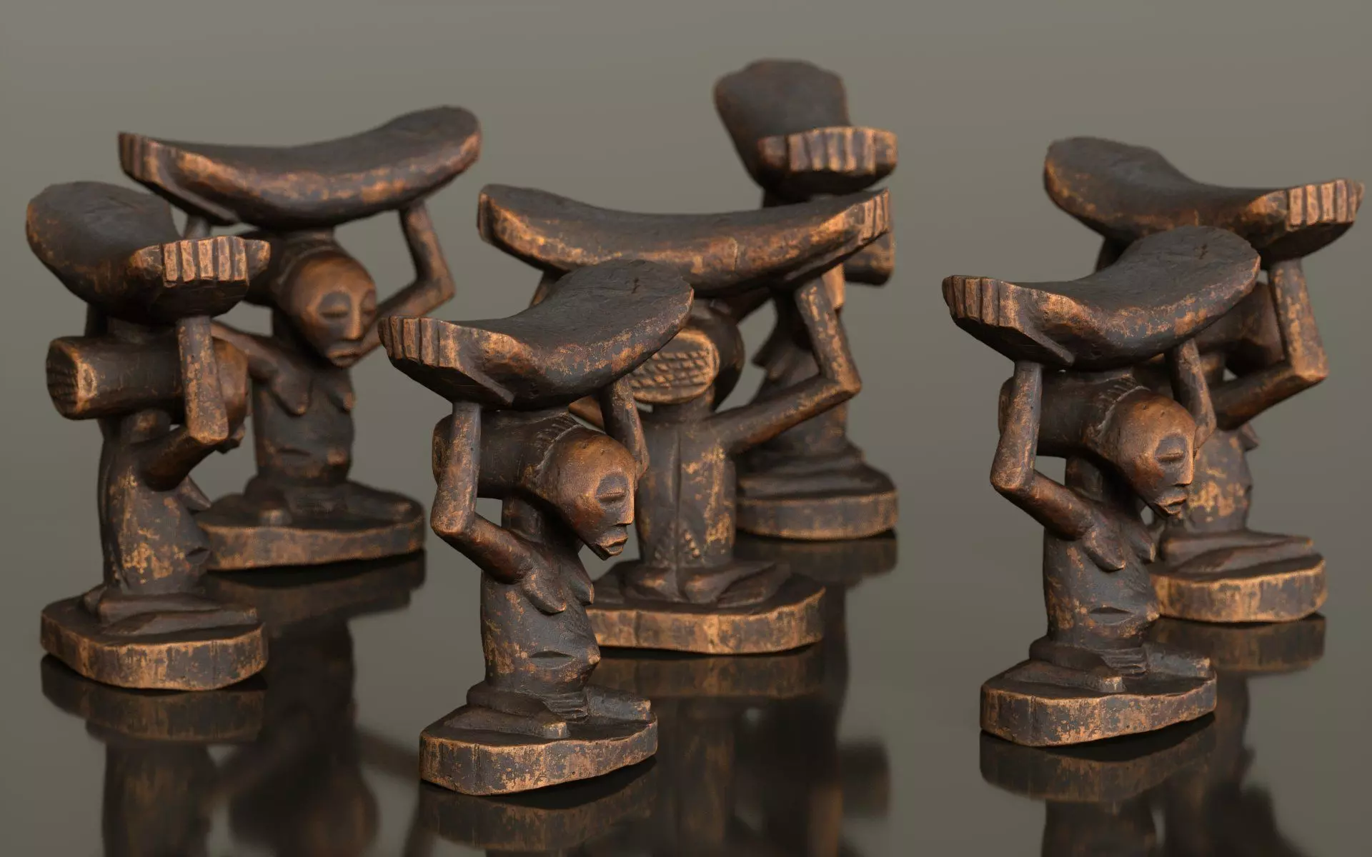 Headrest Africa Wood Furniture Prop 21 Low-poly 3D model