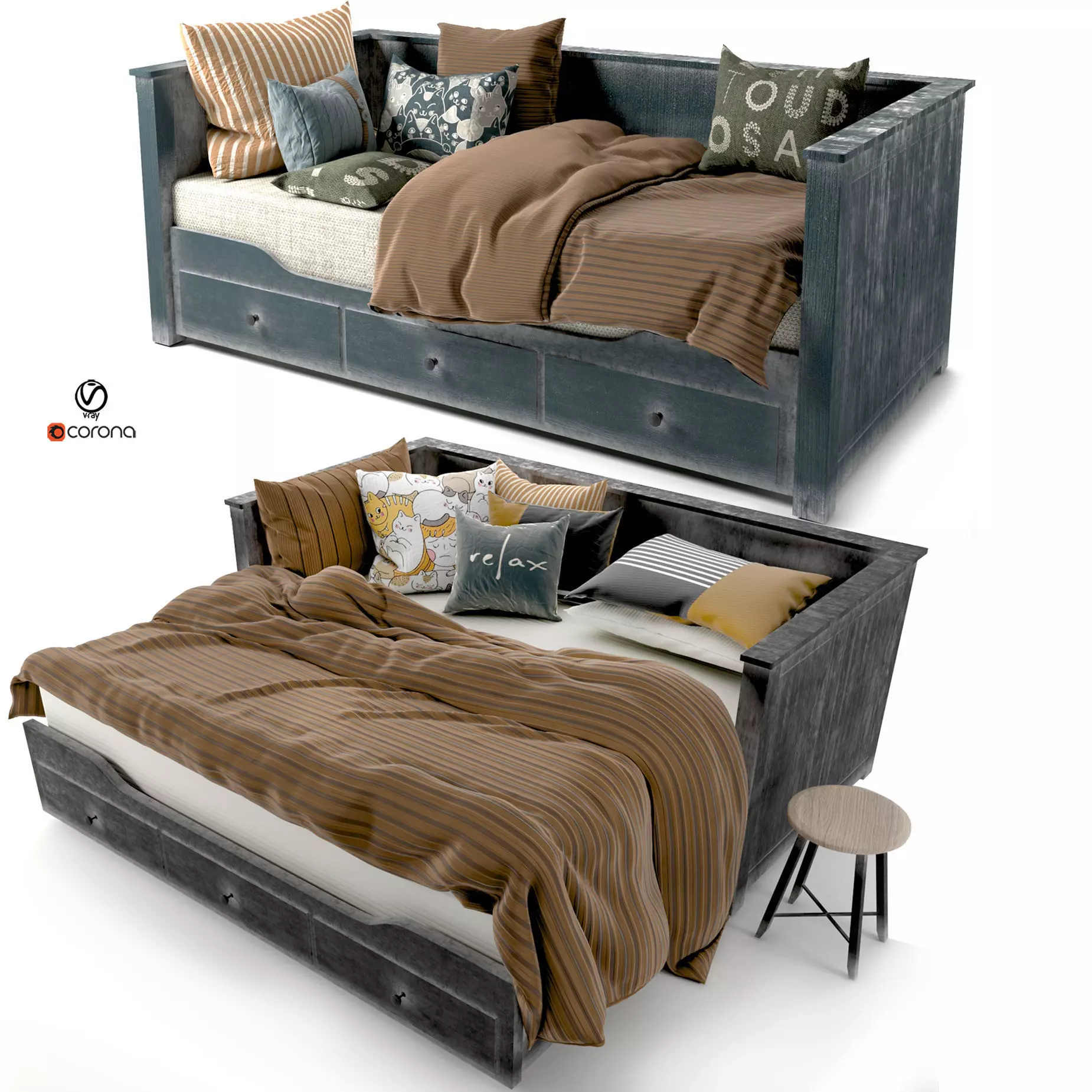 The model includes image files (textures) that add color, patterns, or detail to its surfaces.