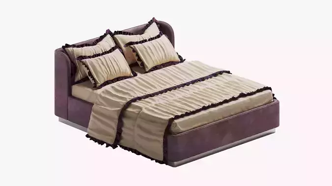 Lavender Bed with Frilly Bedding 3D model