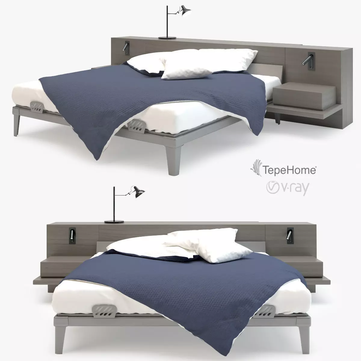 Modern Grey Wood Bed 3D model