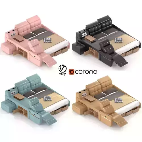 this is a smart bed with massage chair, laptop table, bookshelf, drawer, charger, cup holder etc. with 5 different materials. software used: 3dsmax, marvelous, substance painter note: there are five copies of textured objects and all different materials are ready to use in material editor. to visit the smart bed in real world you can visit link below: