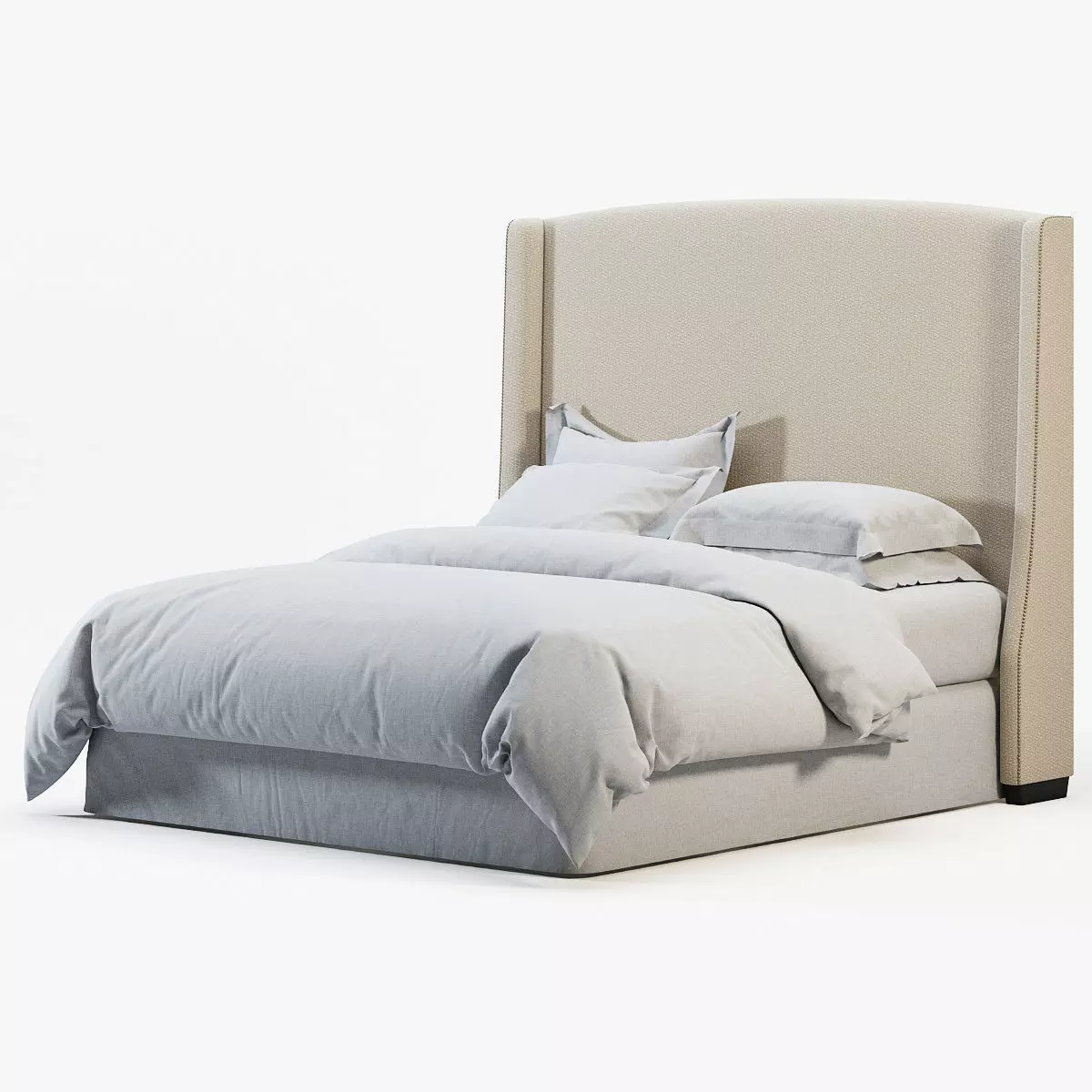 RH WARNER FABRIC HEADBOARD WITH NAILHEADS 3D model