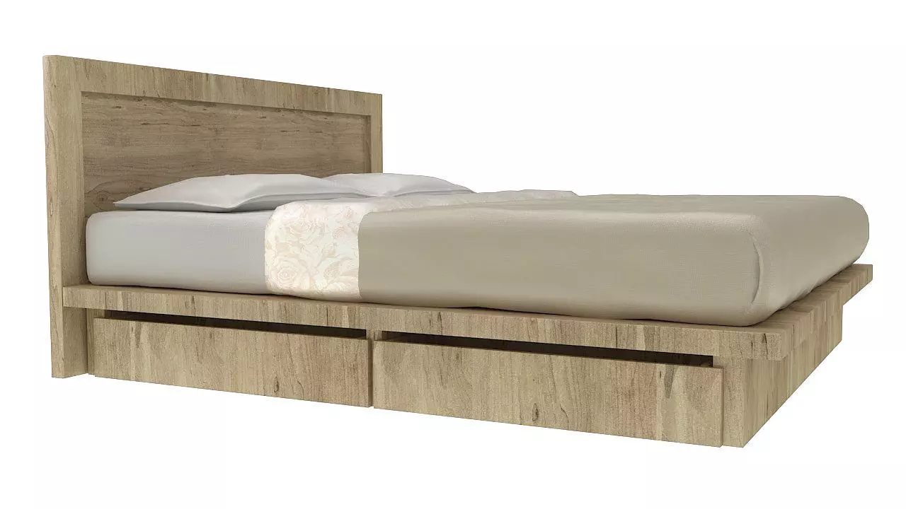 wooden double bed with drawers 3D model