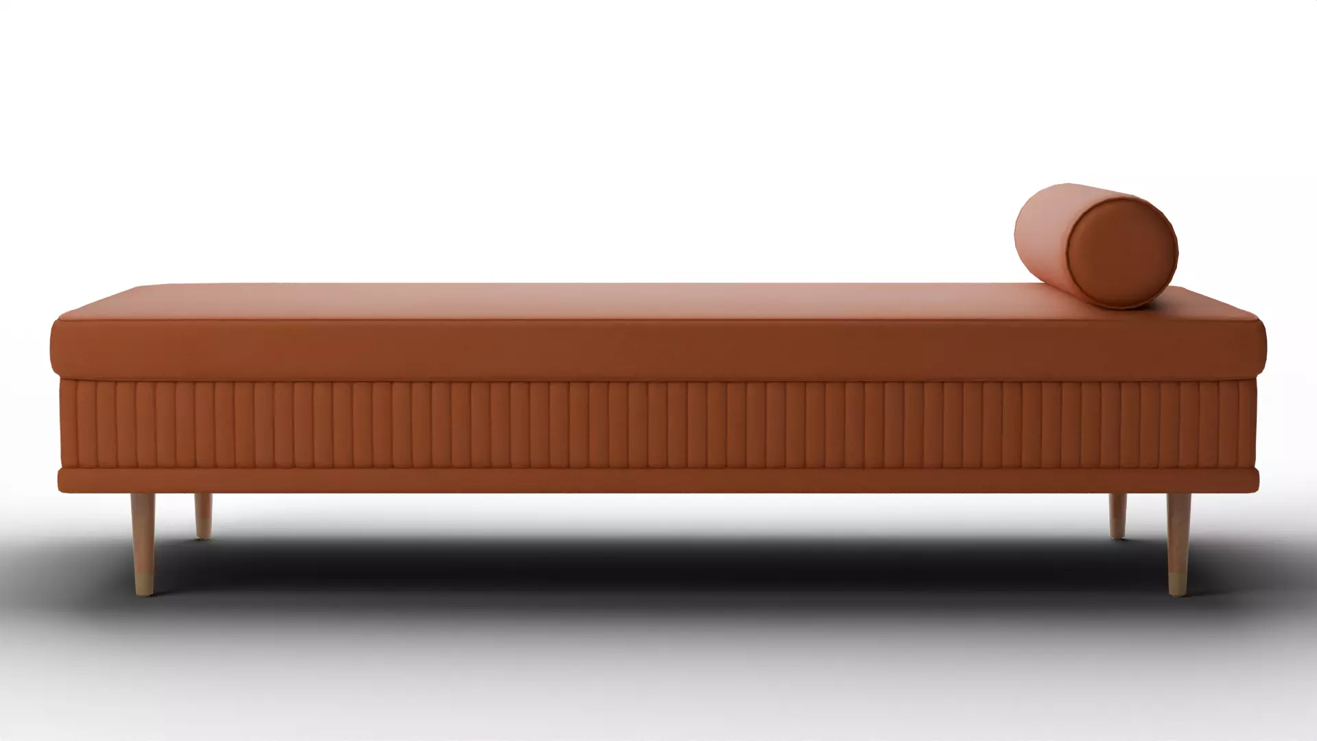 Elevate your 3D transitional spaces with the sophisticated silhouette of the Sienna Brushed Velvet Daybed. This high-fidelity model bridges the gap between a sofa and a bed, making it an essential asset for staging multi-functional guest rooms, home offices, or luxury sunrooms. Upholstered in a premium Brushed Velvet, the model captures the material's signature nap, showcasing subtle color shifts and soft specular highlights where the fabric is brushed or compressed. The design features a low-profile back and arms with a perfectly matched Bolster Pillow, supported by elegant, Mid-Century Tapered Wood Legs in a walnut finish.
