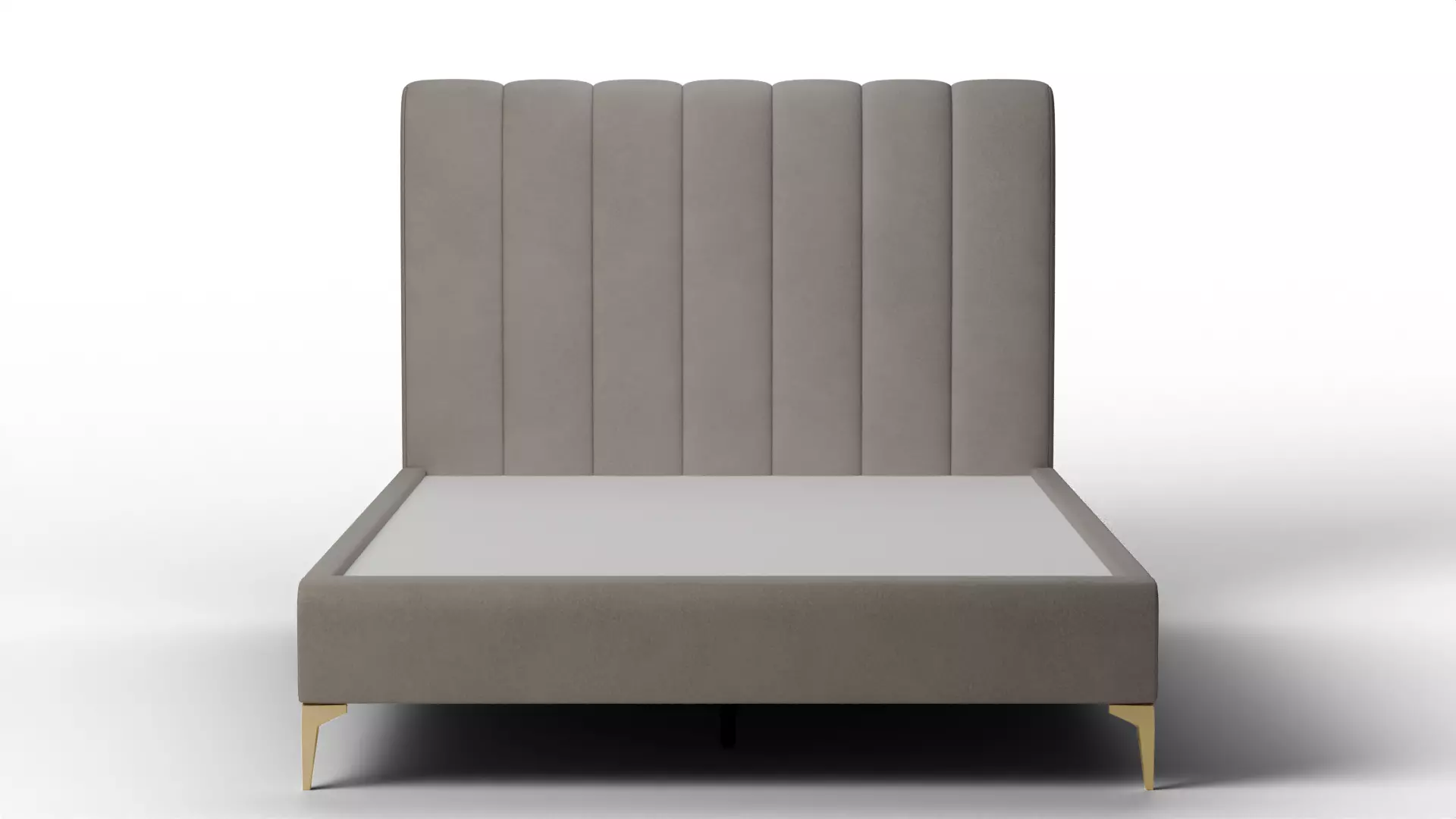 Elevate your master suite visualizations with the sweeping verticality and metallic glamour of the Andes Tall Tufting Bed. This high-fidelity 3D model features an extra-tall, statement headboard defined by deep, vertical channel tufting that adds rhythm and architectural height to any room. Upholstered in a shimmering PV (Performance Velvet) Silver, the fabric is calibrated to react dynamically to 3D light sources, shifting from a cool slate to a luminous platinum. The bed is grounded by a sleek, minimalist frame finished in Light Bronze, providing a warm, sophisticated metallic contrast to the cool tones of the upholstery.