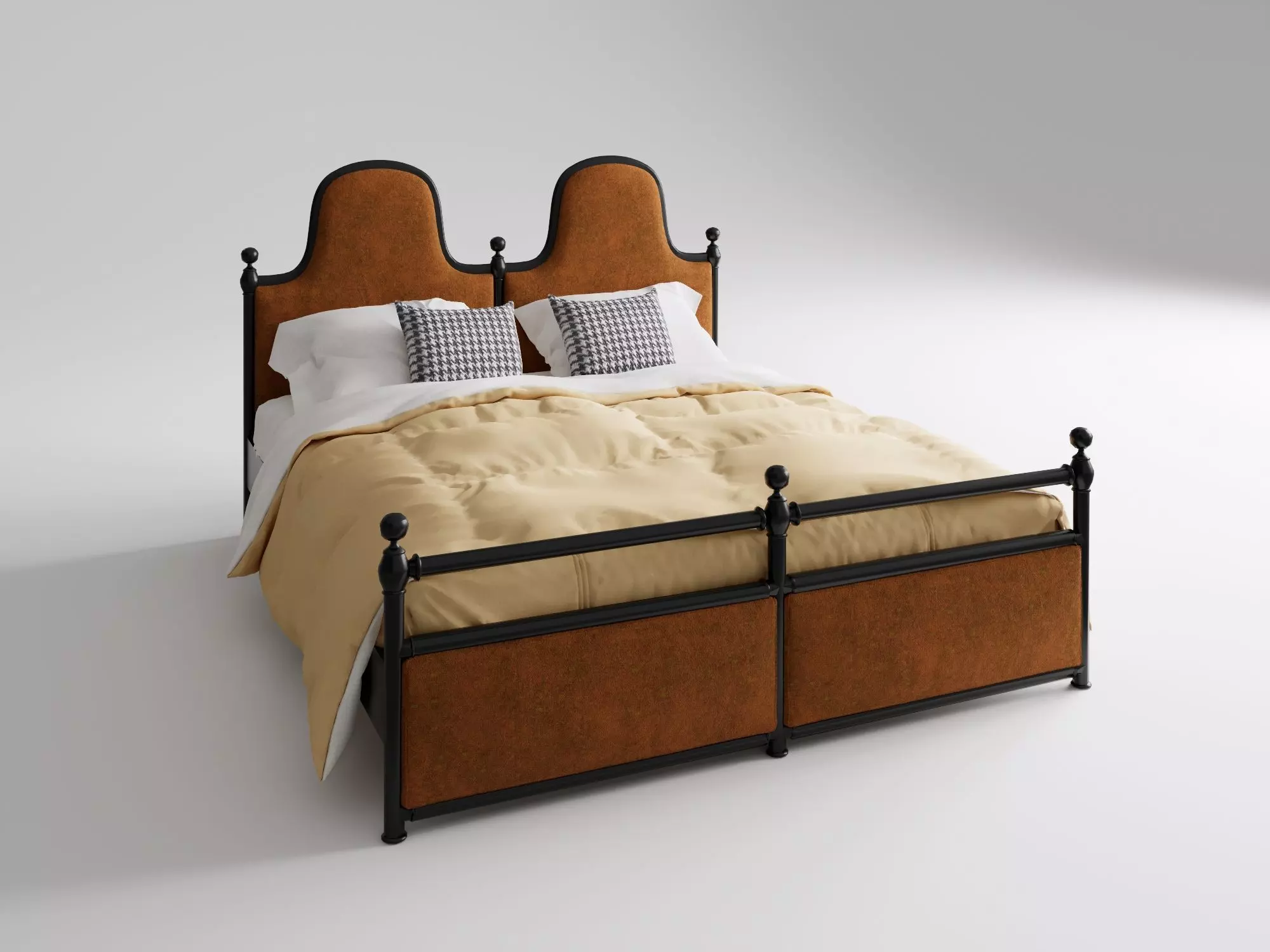 Model Introduction:Presents a vintage industrial - style iron - framed upholstered bed, with a black iron frame matched with brown velvet upholstery, complemented by houndstooth pillows and warm - yellow bedding. Accurately restores material texture and retro shape. Creates a nostalgic, tough yet warm sleeping atmosphere, suitable for interior design, home soft - outfit, themed bedroom creation, helping to build a unique - style space.Applicable Scenarios:Retro bedroom scheme demonstration in interior design, home soft - outfit matching display, themed homestay model room layout, furniture e - commerce effect presentation, characteristic residential decoration referenceIt was created with SketchUp and rendered with Enscape, including lighting and materials. Feel free to check it out, and if you have any questions, please contact me. Thank you.