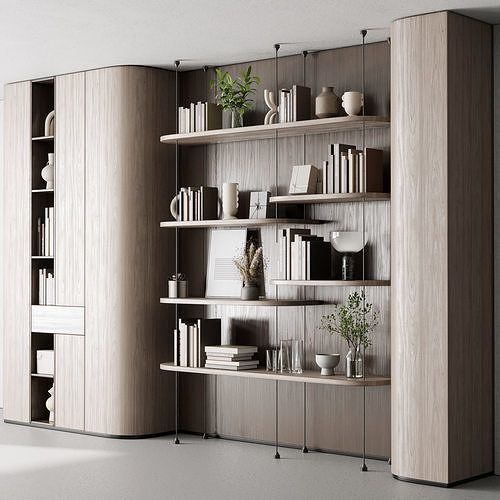 Cabinet Furniture - Wooden Shelves Decorative With Plants and Book 06