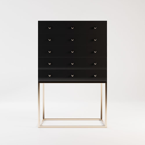 Black-golden modern designed chest of drawers for a living room. It goes well with modern dark colored furniture. Can be used in various interior architecture projects, furniture design projects and video games.