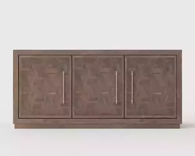 This is a detailed and photorealistic 3D model of the Three Door Credenza in Tumbler Dark Brown finish, designed in Blender. The model features a sleek, contemporary silhouette with three paneled doors, rich wood grain texture, and minimalist metal legs. Ideal for modern living rooms, offices, or dining spaces, this piece works perfectly in interior visualizations and product renders.