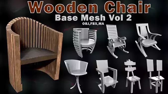 This pack includes 20 wooden chair 3d models as base mesh to add more detail in your 3d projects.