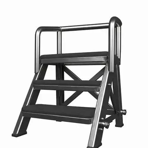 Bank Vault Step Stool 3D ModelThis detailed 3D model showcases a robust steel bank vault step stool featuring secure rubber treads for optimal grip, a practical folding mechanism for convenient storage, and reinforced safety rails to ensure stability when accessing high deposit boxes. The model includes multiple views highlighting the sturdy construction, functional design elements, and professional finish perfect for architectural visualization, animated films, or game development.