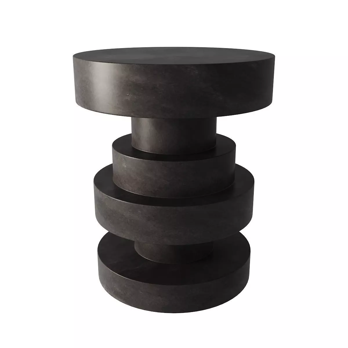 The Kelly Wearstler Apollo Stool, with its stacked volumes of marble, is ideal for outdoor or indoor seating, as a cocktail or side table, or as a sculptural decorative piece.