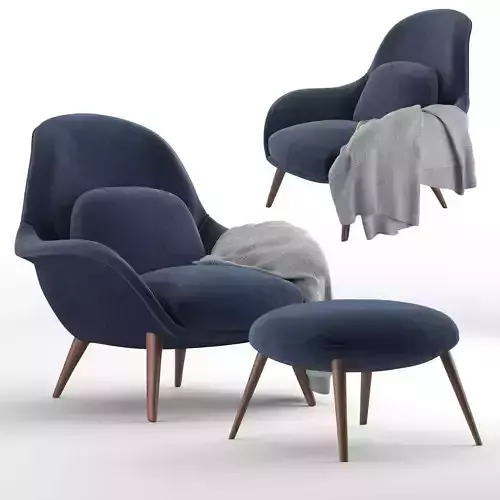 The Armchair Swoon Lounge from the Danish brand Fredericia is suitable for the living room & dining room. It includes an armchair, accompanied by an ottoman.