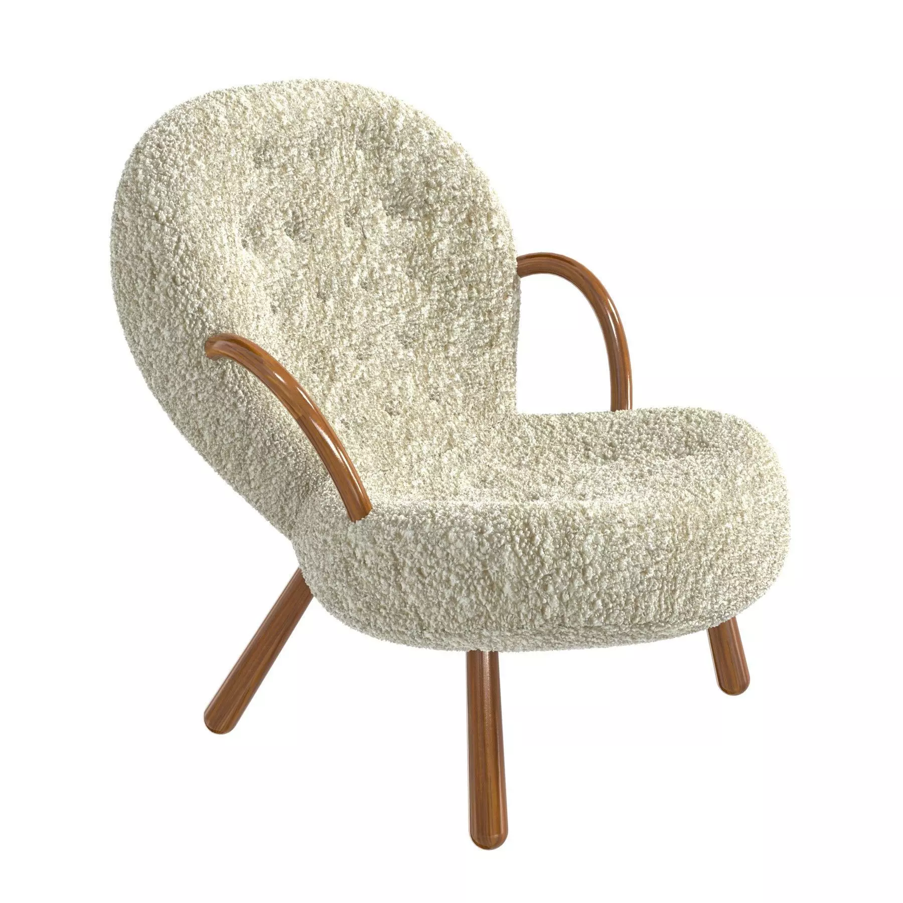 The Clam chair was first designed in 1944 in Copenhagen by Danish upholsterer Arnold Madsen. In 1945 Arnold founded the furniture company Madsen & Schubell together with the cabinetmaker Henry Schubell in order to produce this unique chair that became known as the Muslingstol or Clam chair due to its’ unique shape. Arnold & Henry achieved great commercial success with the Clam chair in Denmark and then in 1953 signed the exclusive rights to Norwegian manufacturers Vik & Blindheim who continued production in Norway until the 1960s. Over the years the Clam chair has become one of the most misattributed and copied designs of the 20th Century. But now, thanks to extensive recent research the history of the Clam has finally been corrected to show Arnold Madsen as the one true designer.Example Shown: Honey Sheepskin + Fumed Oak with Cognac leather buttonsMeasures: Height: 82cm (32.3”)Depth: 80cm (31.5”)Width: 65cm (25.6”).