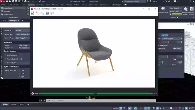 The model has material settings that define how surfaces look (color, shine, transparency, etc.).