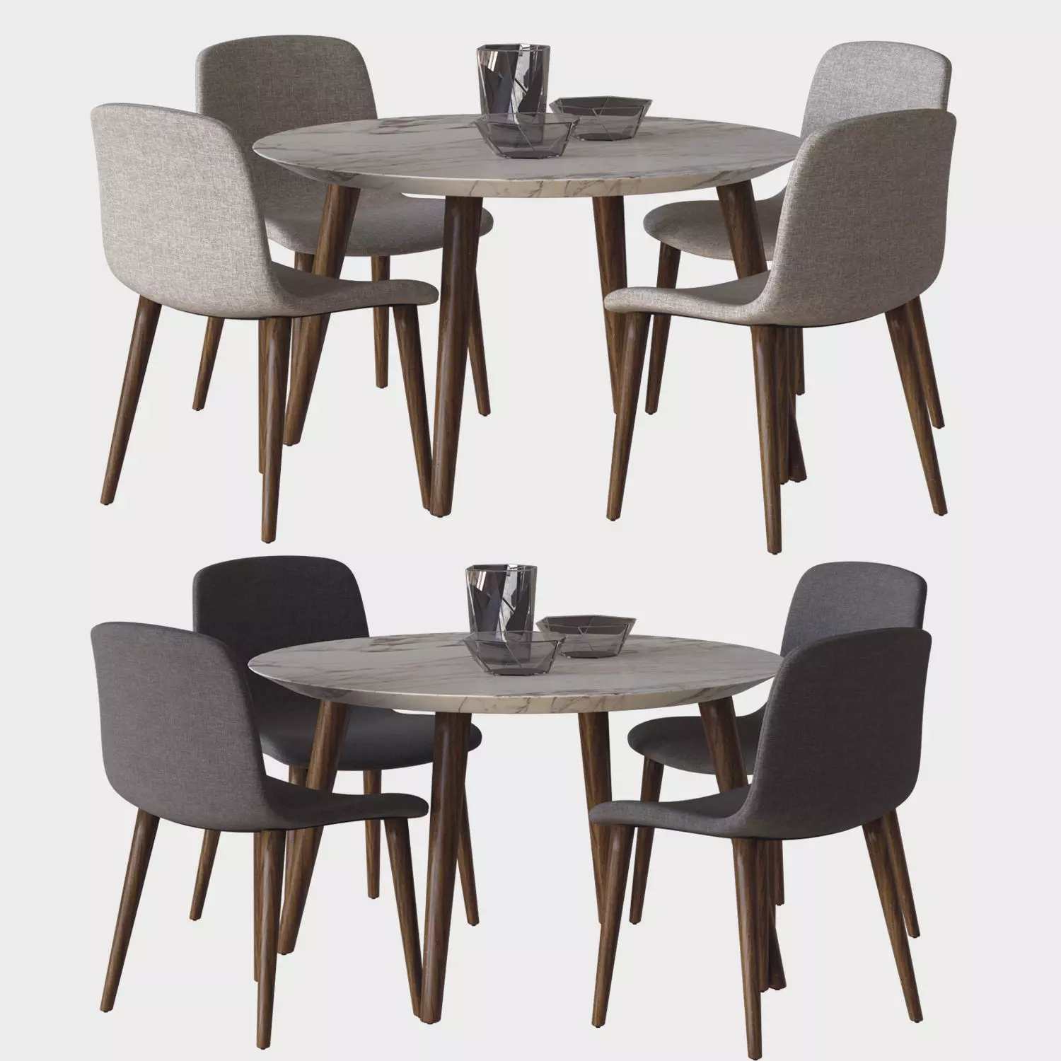 model 3d of chair bacco by dising within reach , model include chair bacco in two color ligh gray and gray oxford , model include also table with marble cover and three decorative glass vases