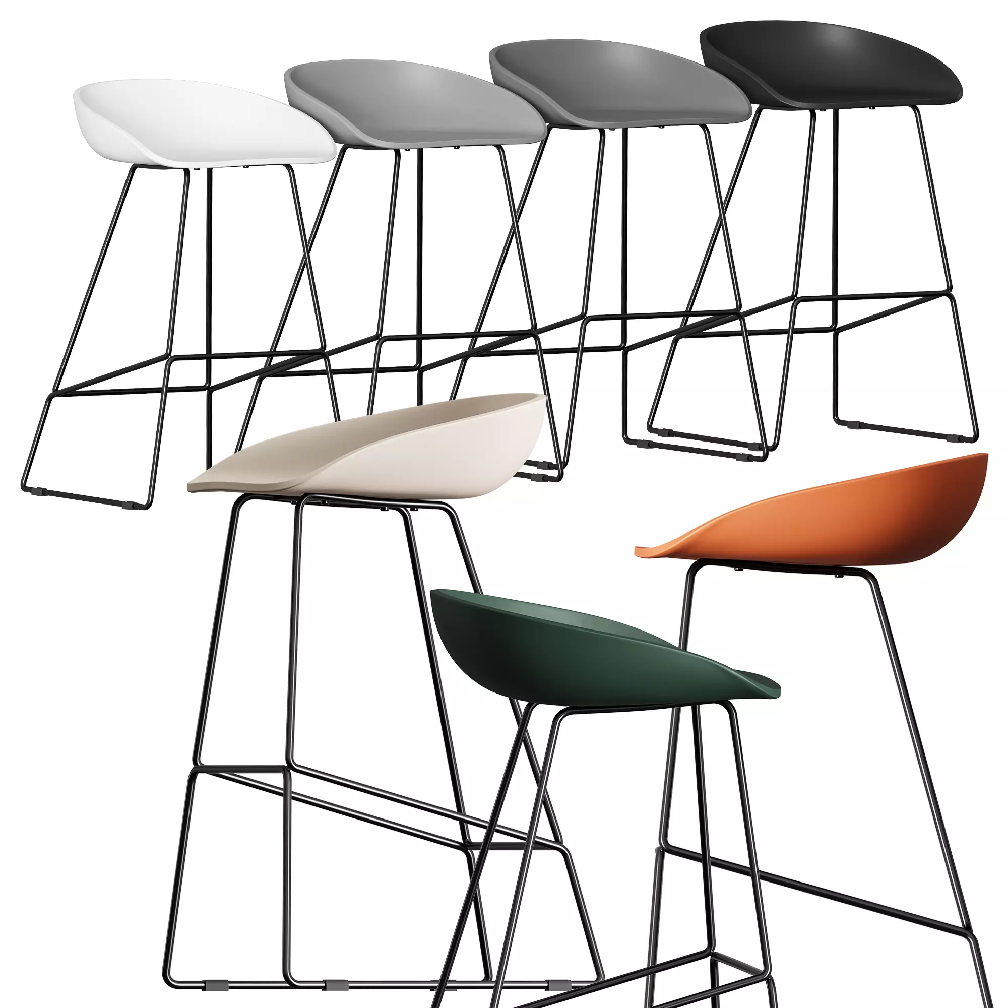 The bar Chair AAS-has the same ability to transform as the other members of the series, ranging from a minimalistic plastic chair to a more saturated soft version. The curved back is balanced on an elegant metal rounded frame, showing off a more industrial design with a striking visual effect. Suitable for use as a bar stool in bars and restaurants, as well as at home for informal dining. Available in two heights and in a wide range of metal finishes and colors.