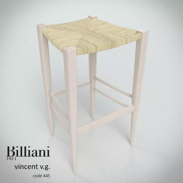 Billiani - Vincent V.G. - Stool code 445Materials: White wood with cellulose rope seat.3ds max format with turbosmooth modifier applied (not collapsed).Obj and FBX formats include a low and high poly meshes.Model in scale 1:1