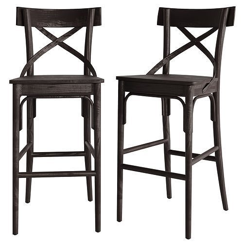 Bistro Distressed Wood Barstool 3D model