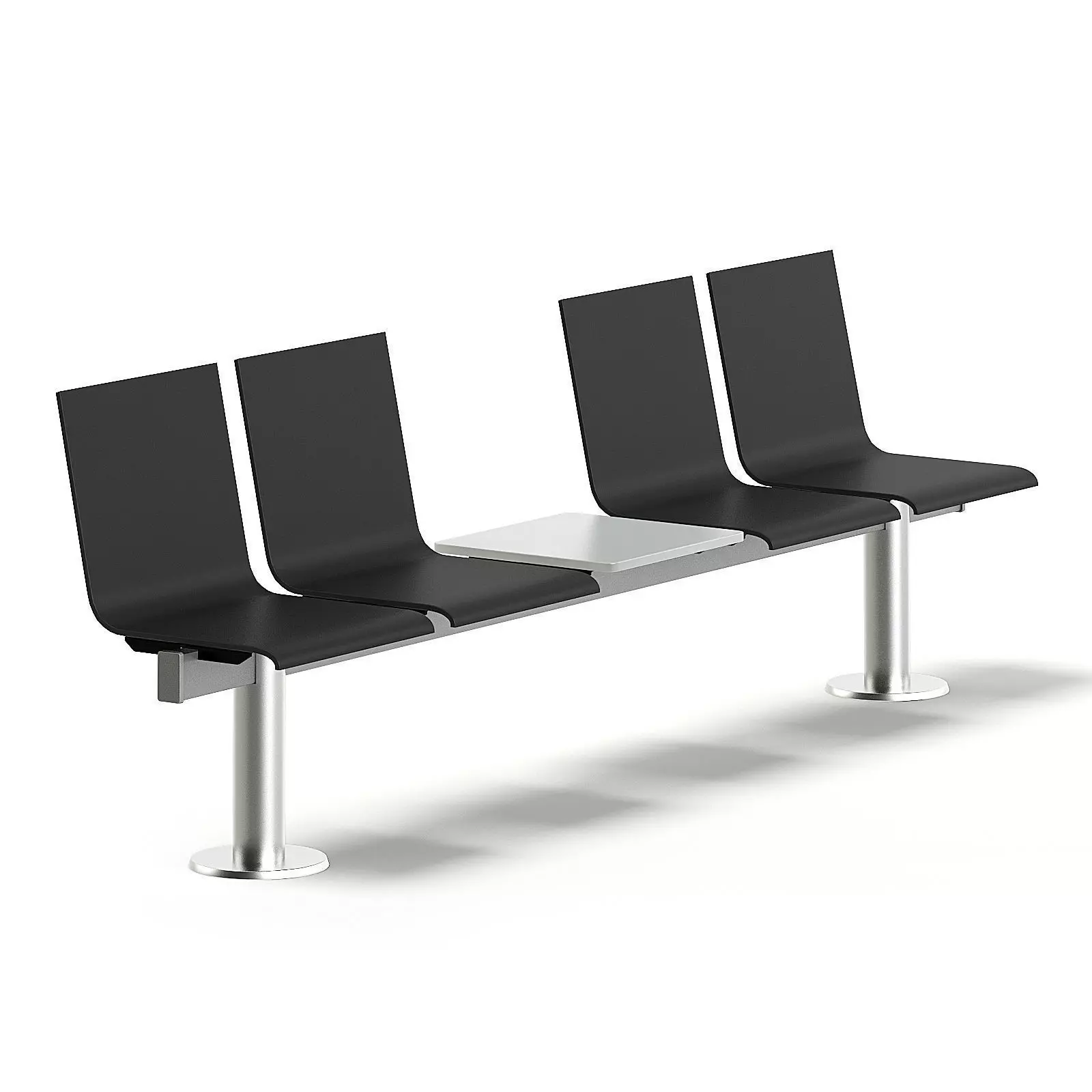 Four seat black waiting chairs 3d model with a light-grey shelf in the middle. Compatible with 3ds max 2010 (V-Ray, Mental Ray, Corona) or higher, Cinema 4D R15 (V-Ray, Advanced Renderer), FBX, OBJ and Unreal Engine.
