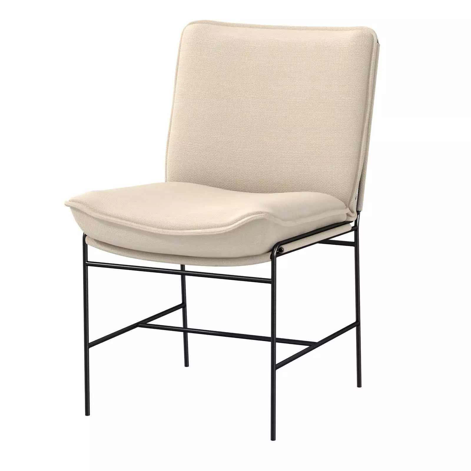 It's just that simple. Armless ivory-taupe seating of high-performance fabric forms a streamlined silhouette atop slim, airy iron framing.