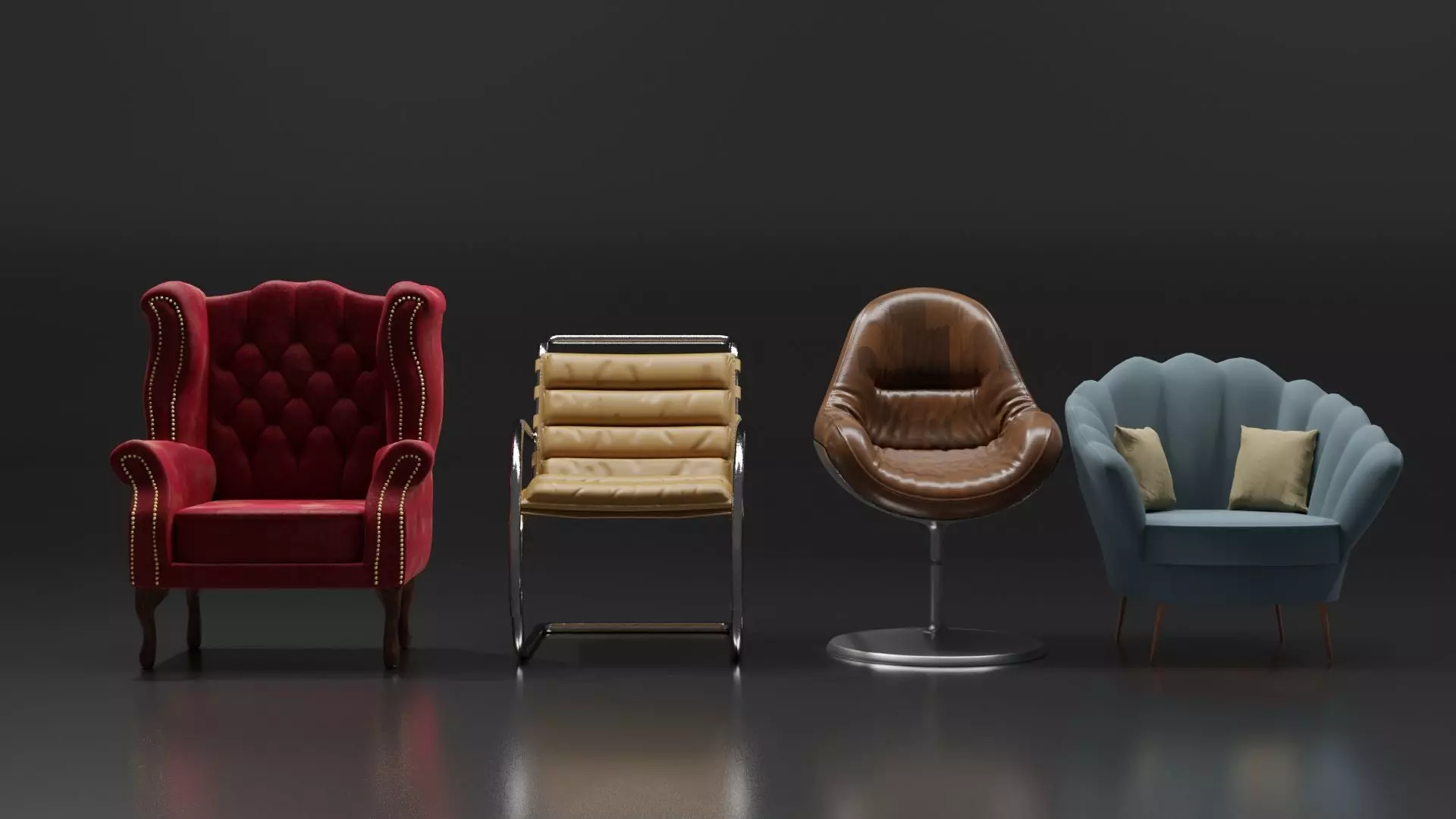 The model has material settings that define how surfaces look (color, shine, transparency, etc.).