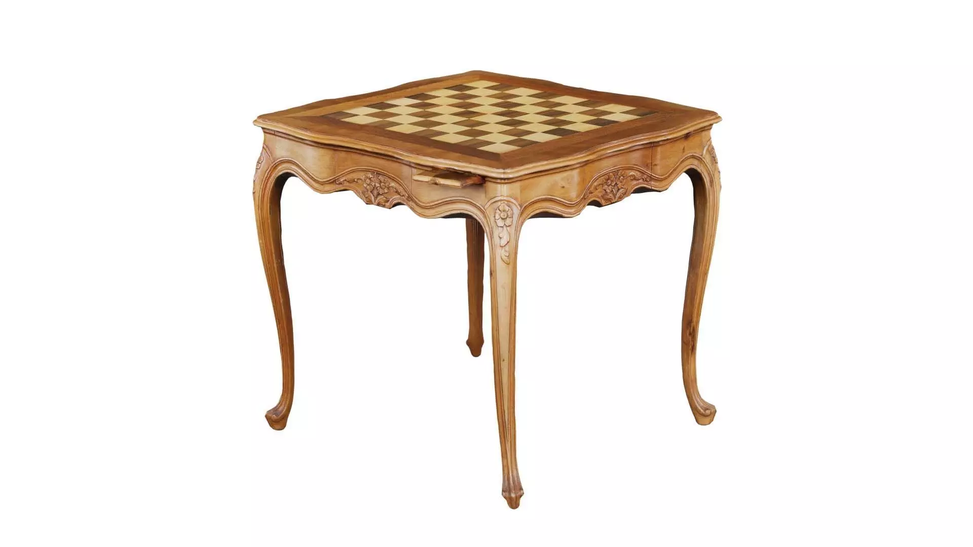 Polygonal Miniatures presents chess table, a model from our 3D scanned catalogue. The model, an antique wooden table with a chess board on top, is obtained by photogrammetry, and scanned using SLR camera's.Processing takes place in Zbrush and Photoshop and the resulting 3D model has unwrapped, non overlapping UV's, and a texture and normal map. Before publishing, we make sure the model has real world scale (meters), correct shader setup and is centered at the origin.Apart from the various file formats, we also offer a Blender file with material and textures set-up, ready for export and rendering. More info can be found below: