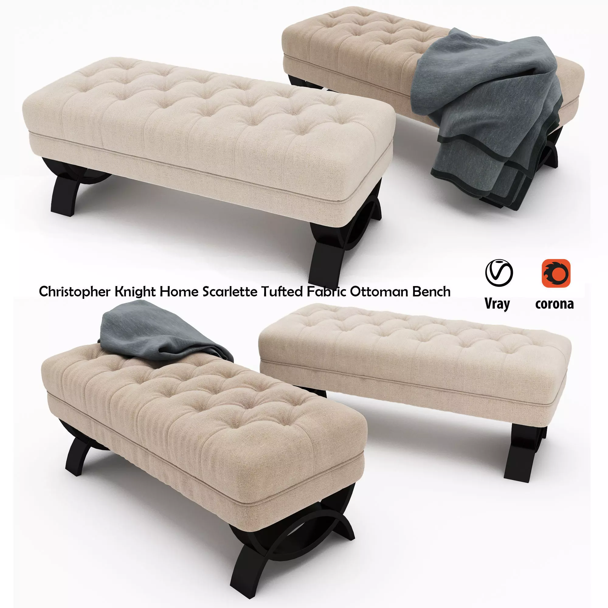 Christopher Knight Home Scarlette Tufted Fabric Ottoman Bench use software : 3dsmax ( corona and vray ) - sketchup 2008 - Cinema 4D - Blender - maya 2016