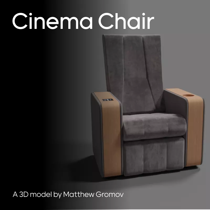 Here is the realistic, yet simple 3D model of a cinema chair. It is rigged, and therefore it is adjustable, like a recliner.