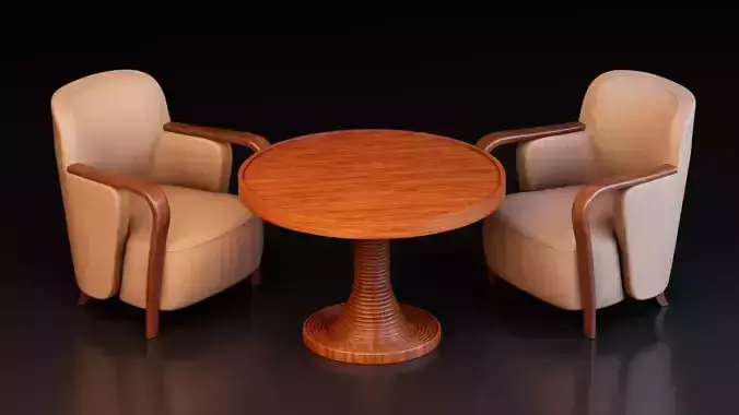 Enhance your interior scenes with this Classic Café Furniture Set, featuring a beautifully crafted round wooden table paired with elegant upholstered armchairs. Designed with attention to material realism and clean geometry, this set is ideal for cafés, restaurants, hotel lounges, waiting areas, and residential interiors.