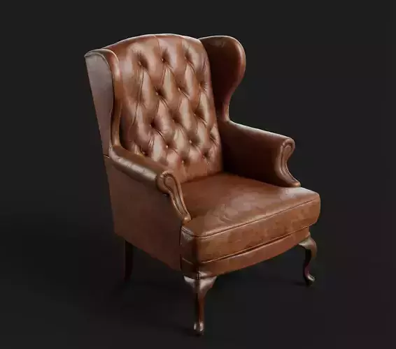 This is a high-quality classic leather wingback armchair 3D model, carefully modeled with realistic proportions and fine details.