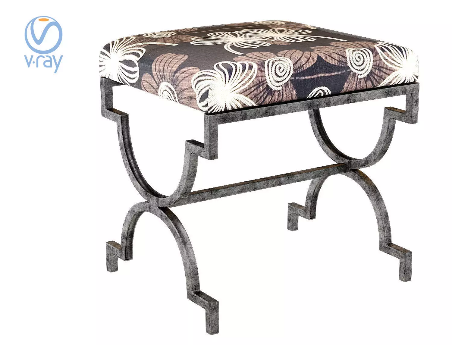 Cream Bench Textile with Metal Low-poly 3D model