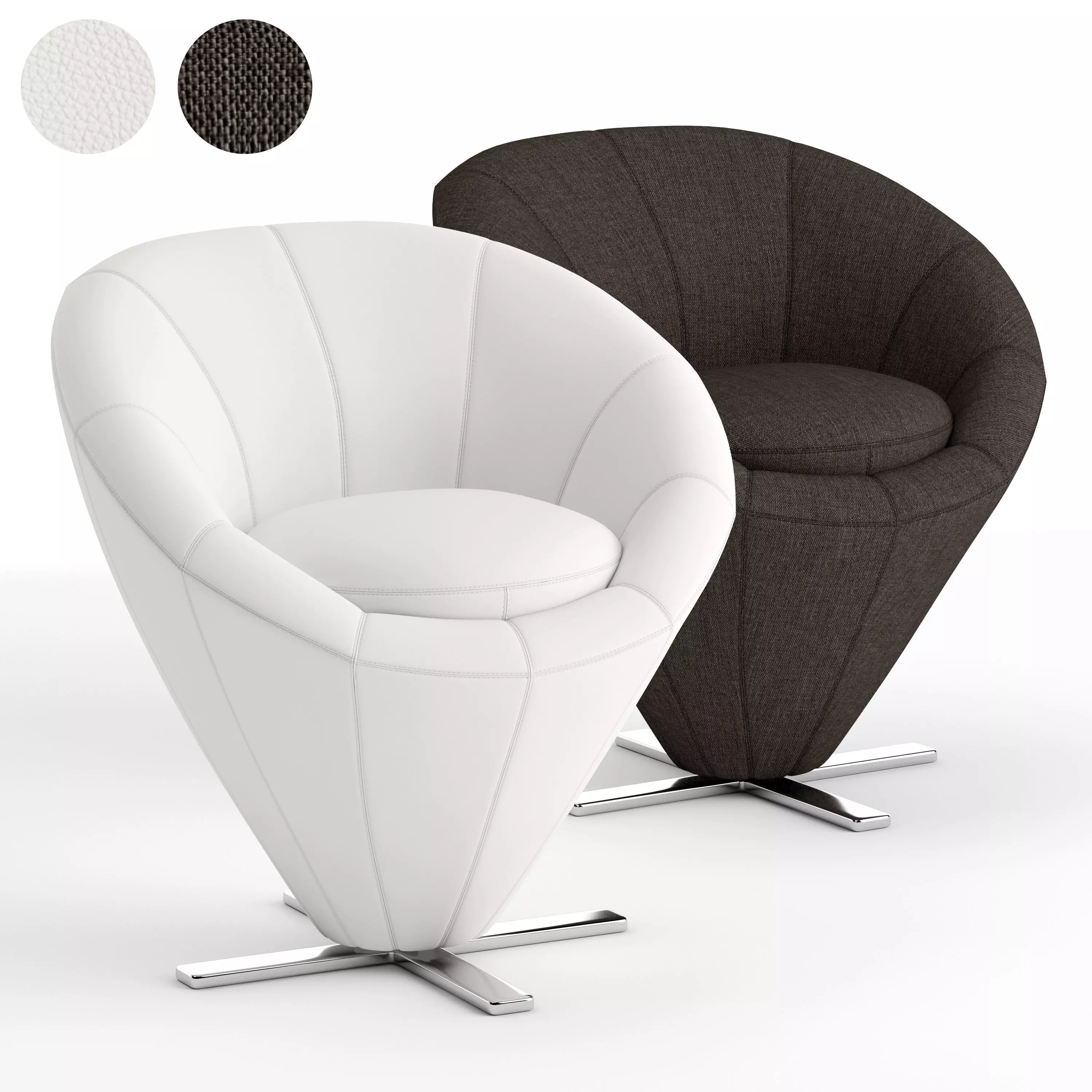 Frame: in metal. Base: swivel base in drawn chrome-plated steel. Padding: polyurethane foam. Cover: fabric or leather.